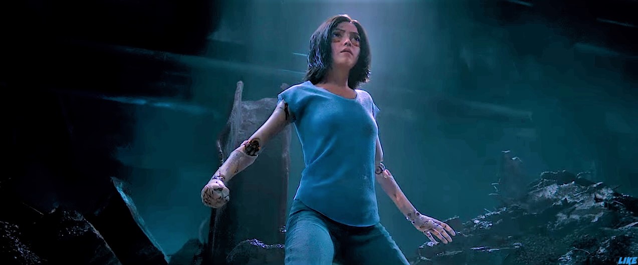 Fui a verla porque me sentí atraído por la atmósfera que destilaban los trailers. Pero he aquí que Alita no es una novedad. Resulta que ya daba guerra por las pantallas de cine japonesas en 1993 en un anime que, después de verlo, no desmerece en nada a ésta peli de 2019. Luego profundizaré en este tema para abordar la digitalización del cine (otra vez). Así pues Alita es una peli de 2019 que podría llamarse «remake» del anime de 1993, que a su vez es una adaptación de un manga japonés de 1991. Por lo tanto, cuando descubro a Alita, pensando que era toda una novedad, resulta que ya tiene 28 años el «angelito» (de combate).