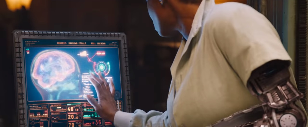 Esto puede sonar rocambolesco, pero eso es lo que conocemos como un ciborg: un organismo cibernético que, trasladado a la ficción busca potenciar las cualidades humanas. Y es que esta película está plagada de ciborgs. Raro será el personaje que no tenga algo implantado, por nimio que sea.
