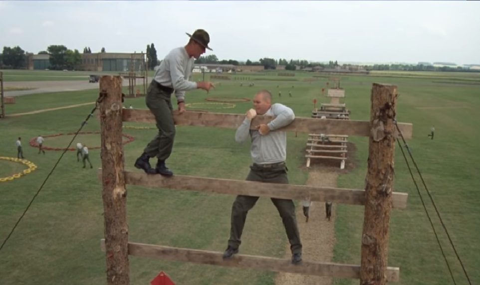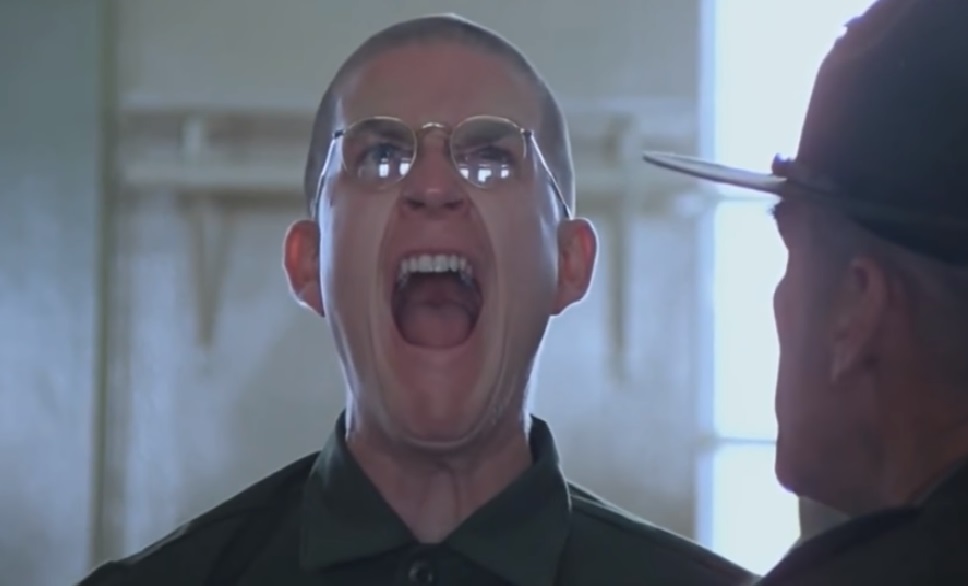 Para mi gusto baja el nivel de la peli en el momento que abandonamos el campo de instrucción militar. Nunca diré que se convierte en mala o en regular, porque es sencillamente genial, pero pienso que va de más a menos.