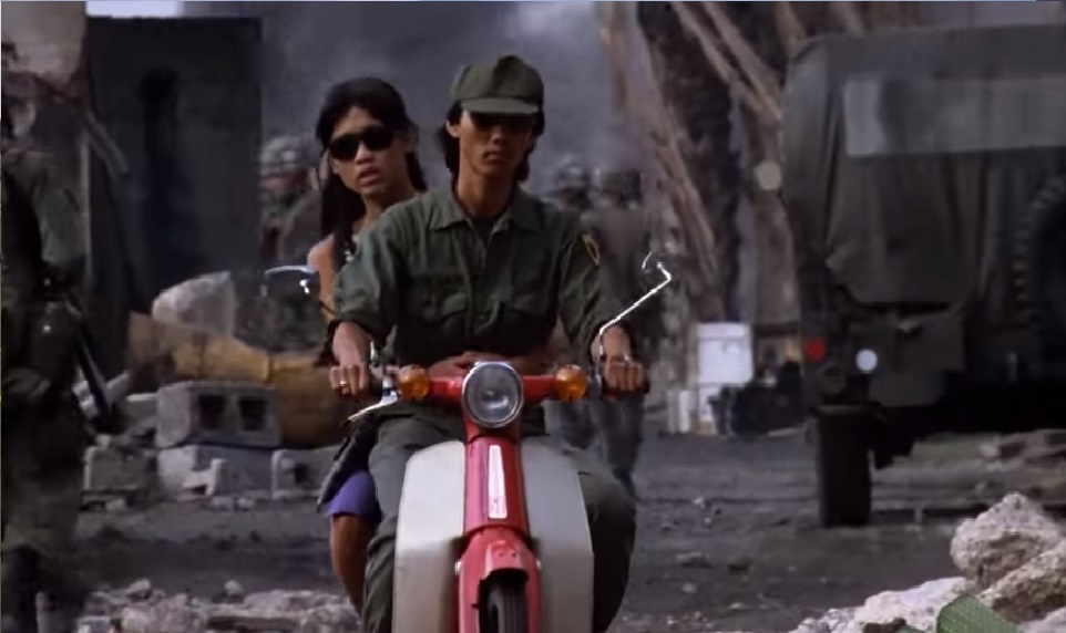 Las primeras aparecerán el suficiente número de veces como para crear un poso sucio en la conciencia del espectador. Sobre todo cuando vemos cómo se sortea a una de ellas entre los soldados del pelotón. Sorteo hecho por un vietnamita que bien parece un mod de Quadrophenia cuando atraviesa la ciudad con su preciada mercancía.