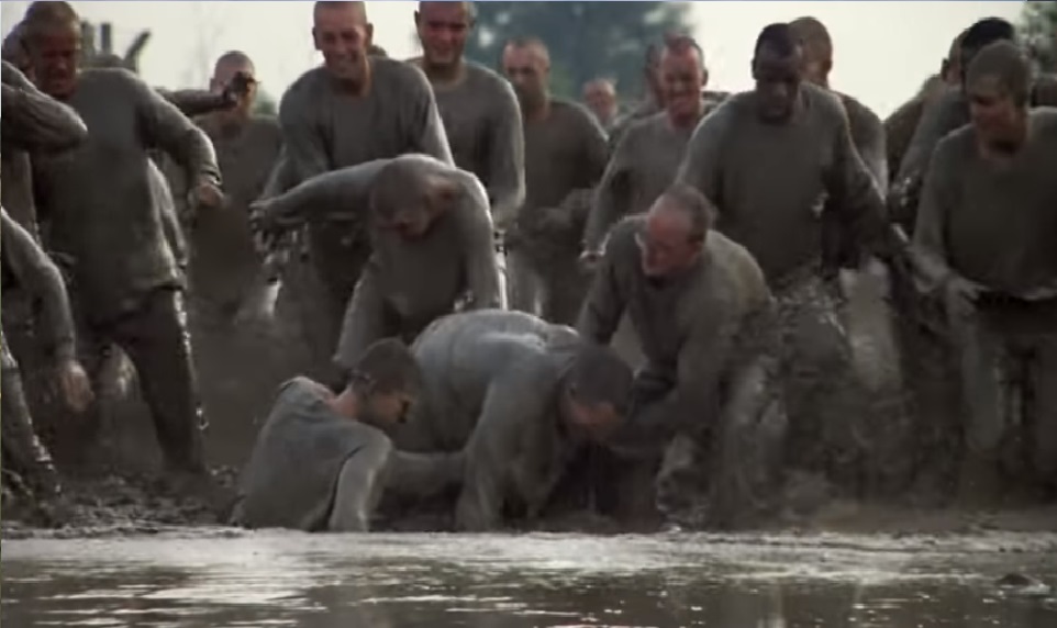 Con todo el tiempo dedicado al proceso de formación del pelotón. A toda la instrucción, a cómo se unen con un nexo de odio y piedad común pensando en el recluta patoso. A partir de aquí, sin quitar valor ni mérito a la peli, creo que hay demasiadas prisas a la hora de ensamblar todos los mensajes que quiere dar a través de la peli.