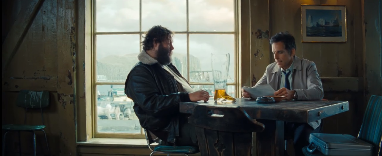 Y cuál será su grado de protagonismo que, sin darnos cuenta, seremos testigos de dos hazañas de Ben Stiller… Primero iremos abandonando el gris que saturaba la pantalla desde el principio. Será como si se mudara una ropa por otra. Mejor diría, como si mudara una piel por otra. Un cambio que irá de dentro a fuera. Empezará por su espíritu aceptando que tendrá que embarcarse (nunca mejor dicho) en la aventura.
