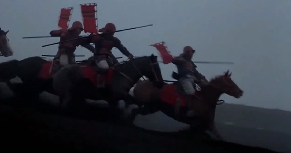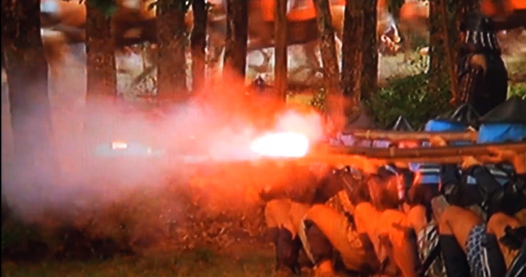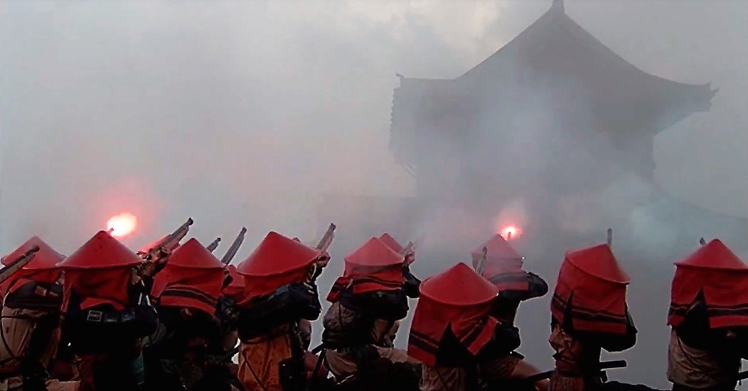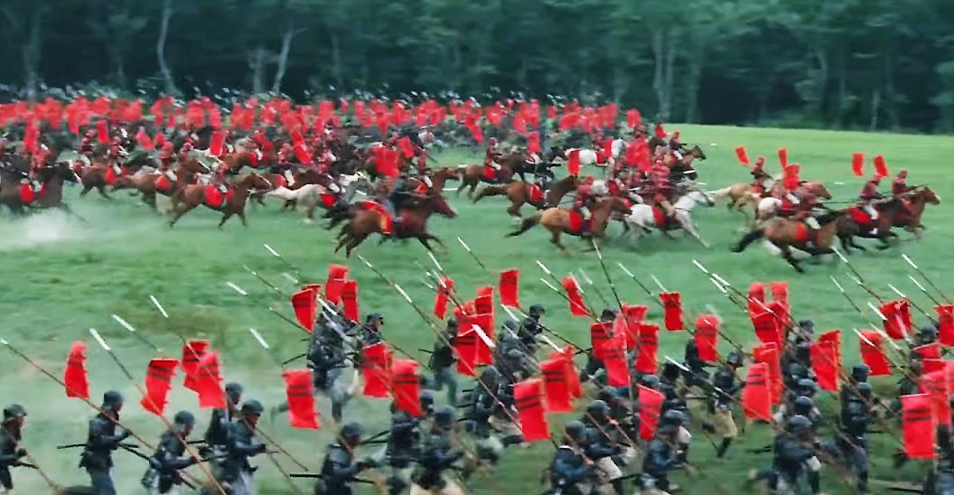En la película veremos ambos tipos de combatientes, pero lo que es más, veremos arcabuceros. Ahí quería llegar. Cruzamos dos aspectos cruciales: infanterías interminables y armas de fuego recién incorporadas al arsenal bélico de estos señores de la guerra. Aquellos líderes territoriales que entraron en contacto con los portugueses (curiosamente jesuitas (había puesto «franciscanos» pero el propio Jonathan López-Valero ha tenido la gentileza de corregirme desde Twitter, cosa que agradezco. Como bien me indica en su tuit, los franciscanos llegarían más tarde, y en esa época los japoneses ya hacían sus propios arcabuces)) fueron incorporando las armas de fuego. Primero las recibieron como regalo y después como mercancía. Las usaron y las estudiaron. Algunas fueron desmontadas y estudiadas para comenzar su producción local y no depender de terceros.