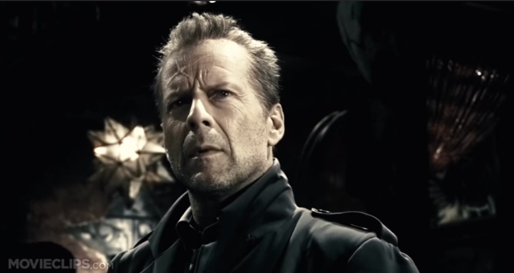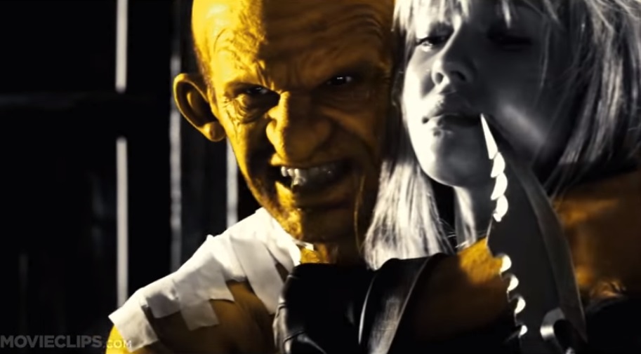 Miller retoma el tópico del policía que está a punto de retirarse. De hecho creo recordar que éste es el último día de trabajo de John Hartigan. No olvidemos que es cine negro. Está sobre la pista de Nancy Callahan, una niña de 11 años secuestrada por el hijo del senador Roark. La idea era secuestrar a la niña, abusar de ella y borrar todo rastro de la brutalidad asesinándola y haciéndola desaparecer. Por suerte Hartigan le volará la mano, una oreja y le pegará un tiro de gracia entre las piernas. Se enfrenta y derrota a los secuaces del hijo del senador, que hablan de tal modo que me hace recordar la jerga de La naranja mecánica.
