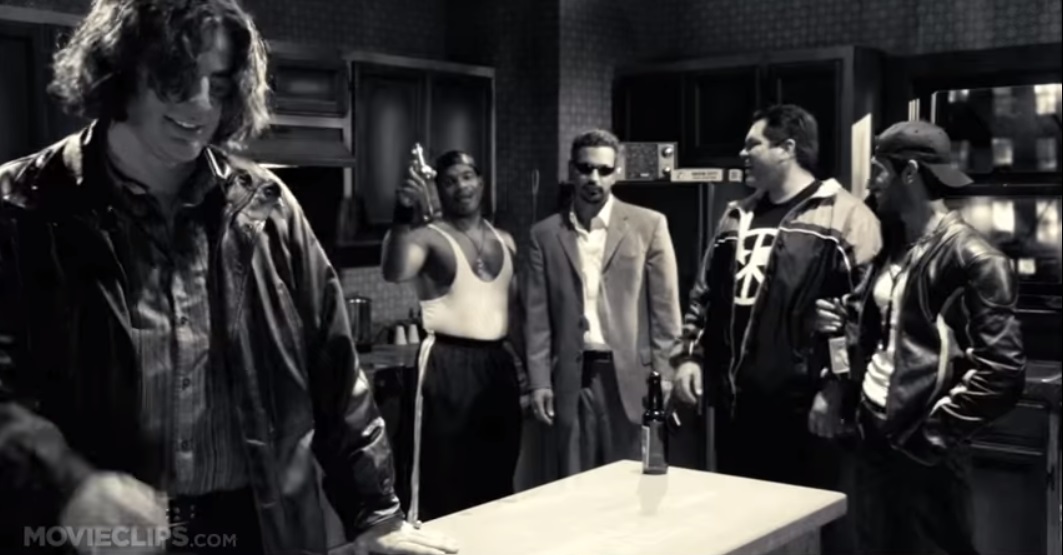 Al final Dwight no puede contenerse y rematará la faena terminando con Jackie Boy. Eso y haciendo las labores del Sr. Lobo en Pulp Fiction. Limpiar la escena del crimen. Más que limpiar, recoger los cadáveres y llevárselos fuera del barrio porque para colmo de males descubrirán que el macarra y pendenciero Jackie Boy es policía. Y si la poli encuentra a uno de los suyos muerto en el barrio, adiós a su libertad e independencia de mafias y polis corruptos.